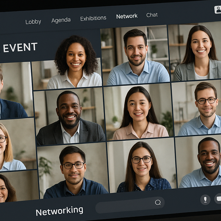 virtual platform uses a recommendation engine (AI-driven) to suggest relevant people to connect with attendees, sponsors, or exhibitors based on shared interests or goals.